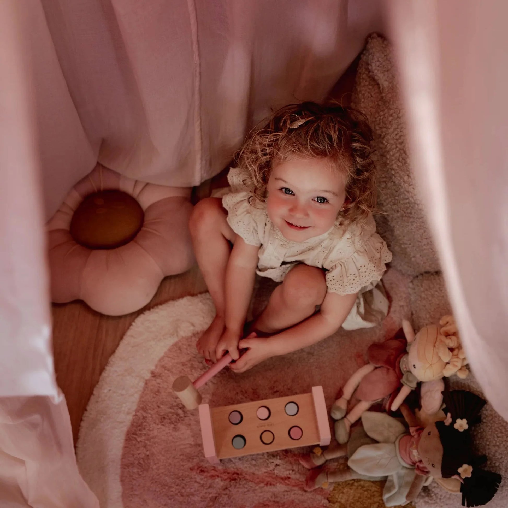 Донесете допир од цветната градина во детската соба со оваа плетена перница во форма на цвет од колекцијата Fairy Garden.