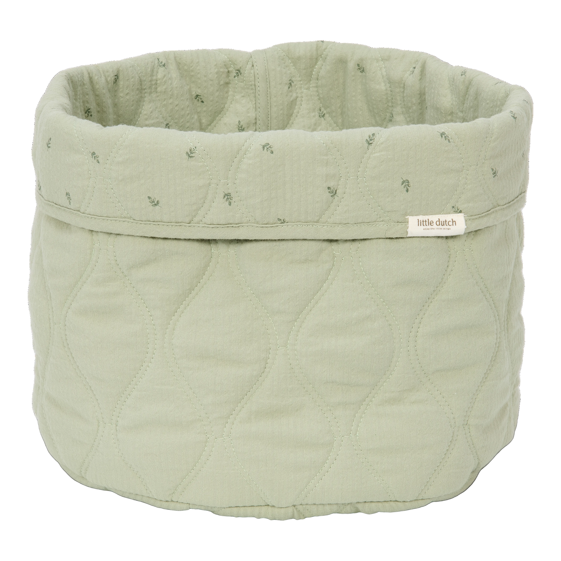 Држете ја собата уредна со оваа декоративна, мека корпа за складирање. Изработена од 100% органски памук, со прекрасен дезен „Pure Sage“ и внатрешност во нежна нијанса на жалфија. Корпата е со две лица и може да се користи со превиткан раб, за различен изглед. Совршена за играчки, ќебенца, пелени и повеќе.
