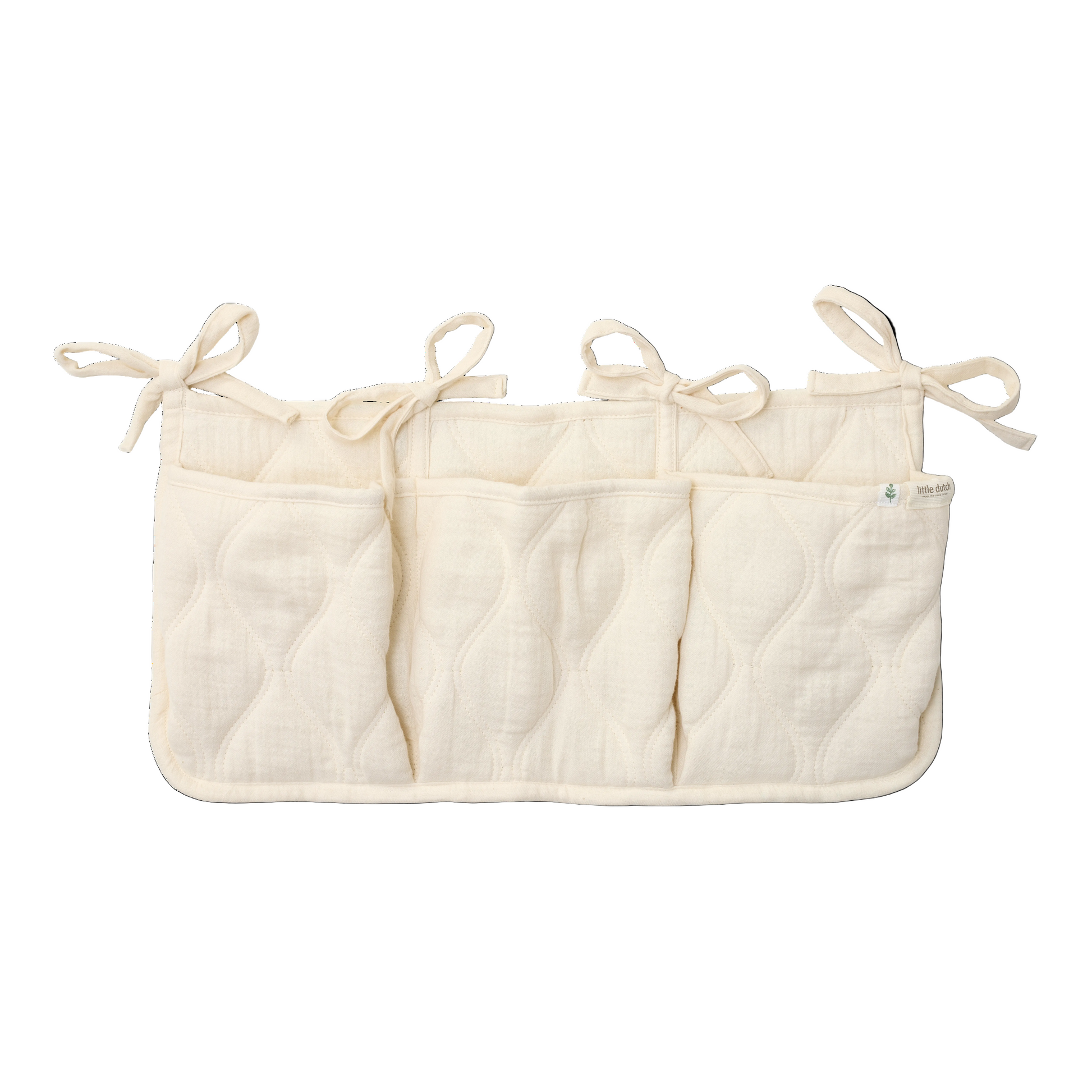 Чувајте ги сите неопходни бебешки работи на дофат со овој практичен организер. Изработен е од муслин ткаенина, претходно испрана и со набрана текстура, со меко и прошарано полнење за дополнителна мекост.