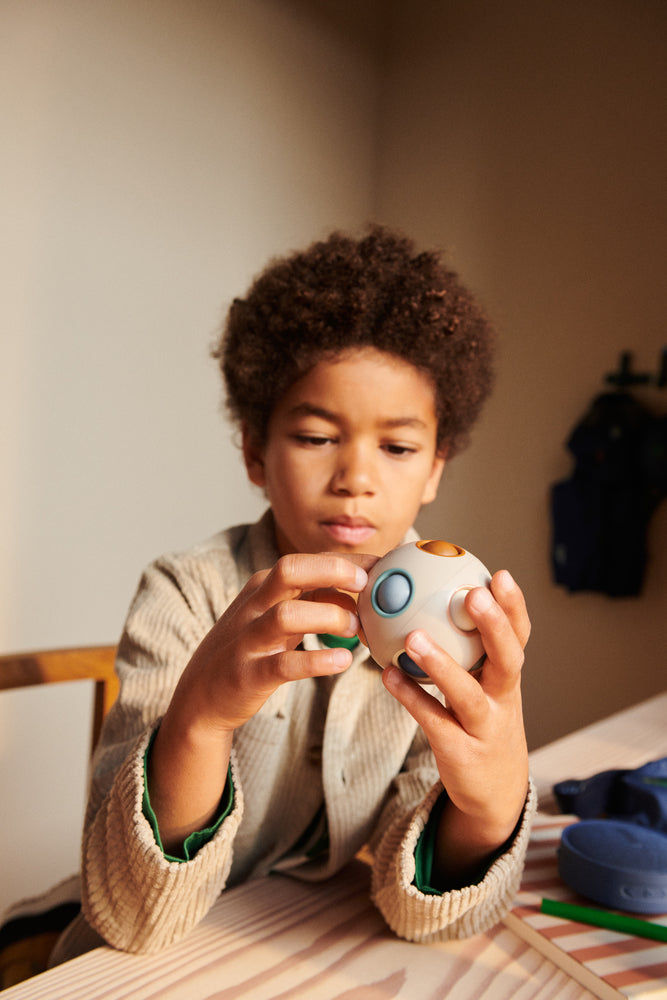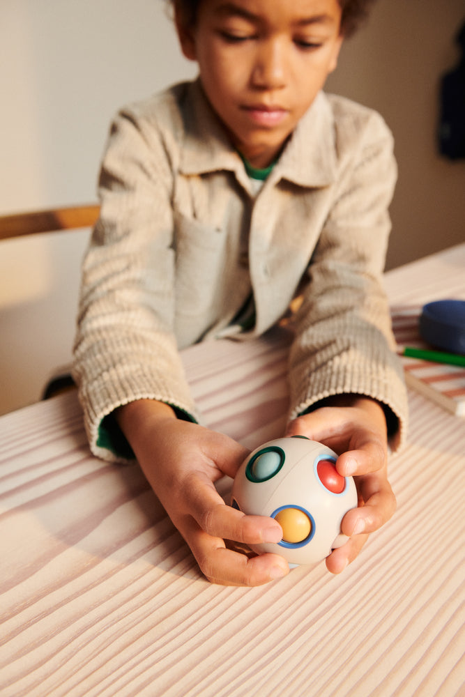Оваа фиџет играчка е дизајнирана за вртење и поместување на мали шарени топчиња, со цел да се усогласат со бојата на прстенот.
