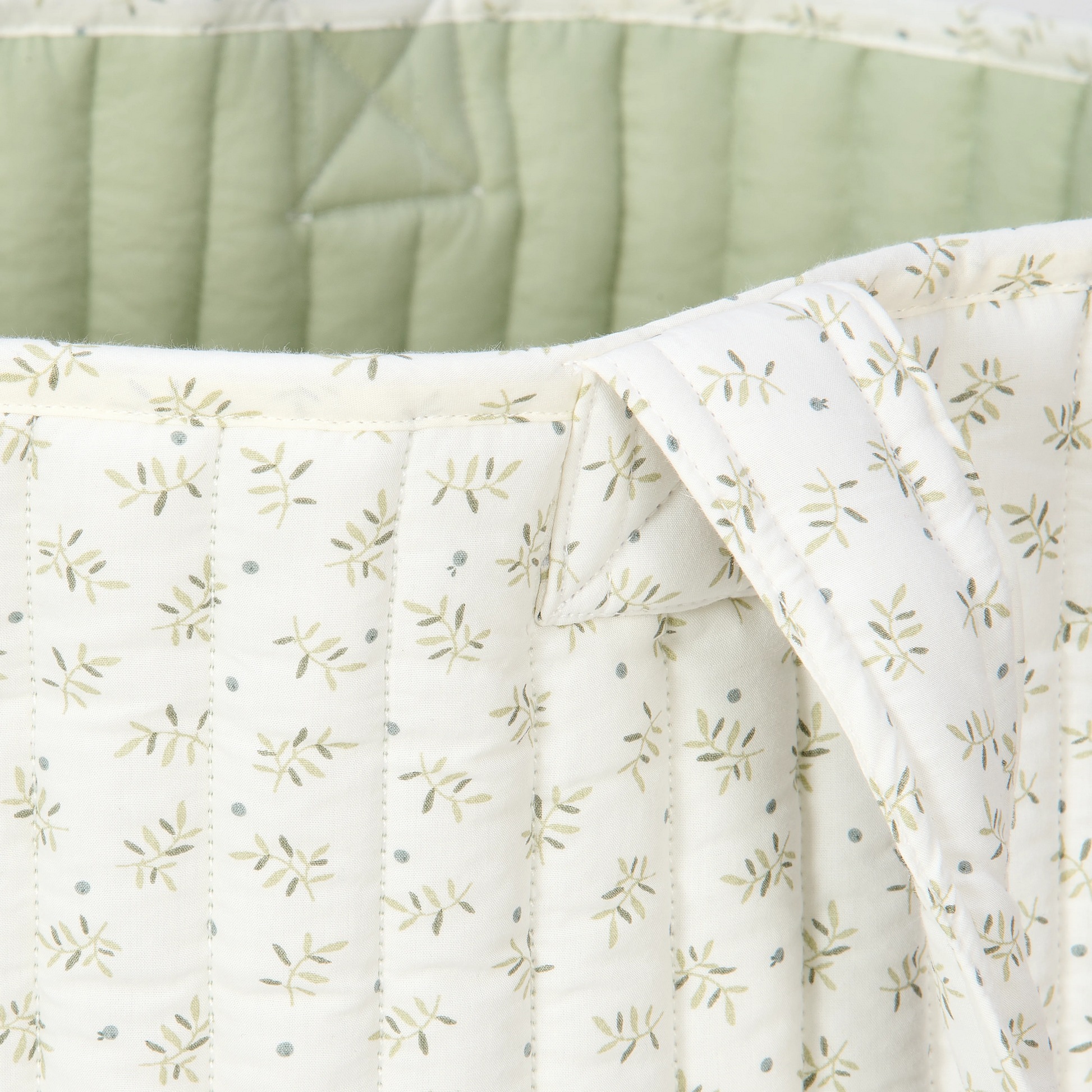 Држете ја собата уредна со оваа декоративна, мека корпа за складирање. Изработена од 100% органски памук, со прекрасен Blueberry Leaves дезен и внатрешност во нежна нијанса на жалфија. Корпата е со две лица и е совршена за играчки, ќебенца и повеќе - со рачки за лесно пренесување.