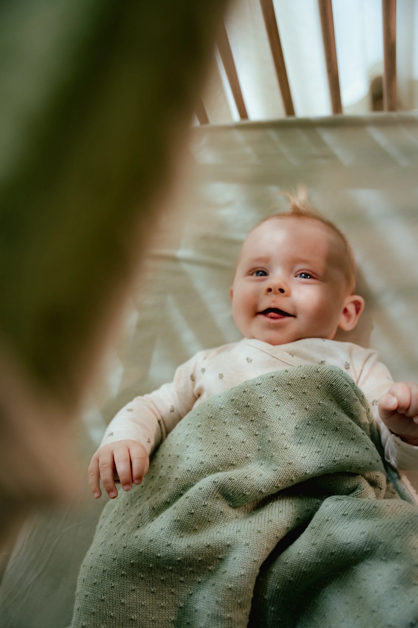 Ова прекрасно ќебе ќе му обезбеди топлина и удобност на вашето бебе додека спие. Предната страна е од плетена ткаенина изработена од 100% органски памук со фини прошивања, а задната страна е од мек и топол флис. Благодарение на комбинацијата, ќебето е доволно топло за зимските месеци и може да се користи не само во креветчето, туку и како покривка или мека подлога за игра.