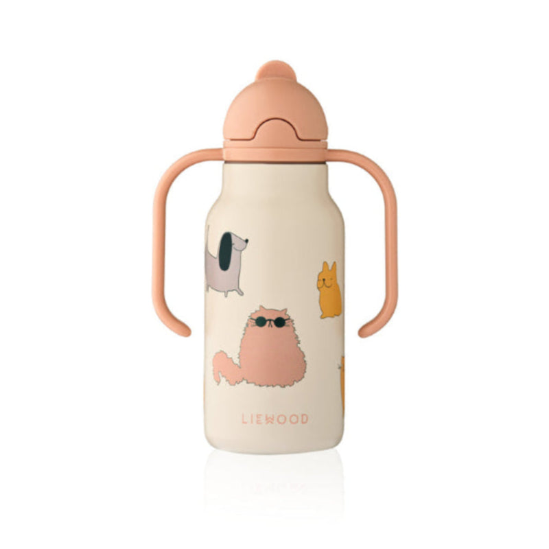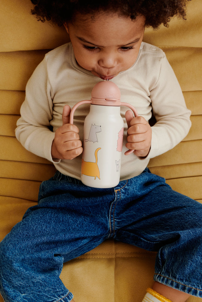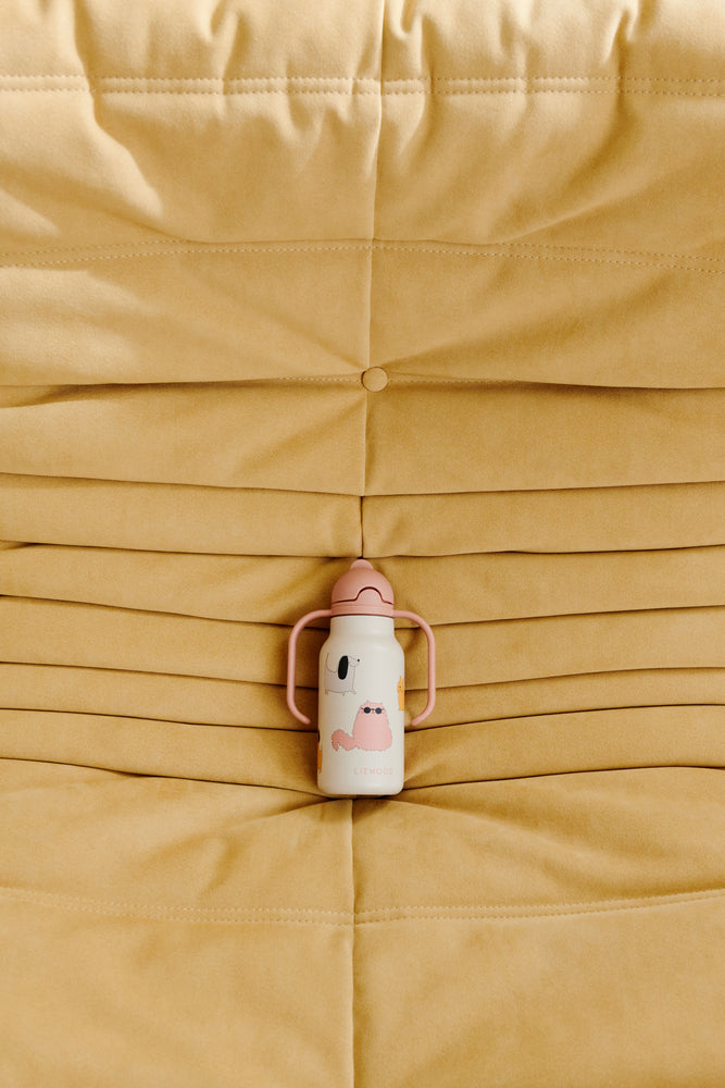 Шишето Kimmie на Liewood е иновативно шише за вода, погодно за мали деца, има две лесни рачки закачени на капакот, вградена сламка и е направено од нерѓосувачки челик 18/8. Капакот одговара на сите шишиња Falk, што го прави совршен придружник за потребите за хидратација на вашето малечко.